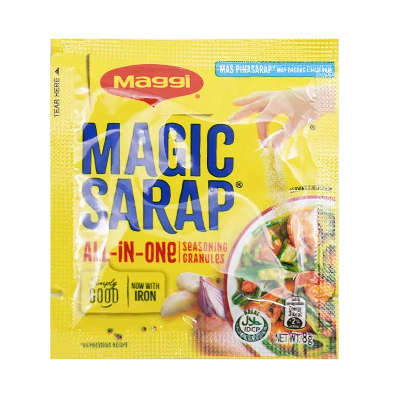 Mat:Peppar, fruktdryckspulver (med frön/socker), malet kaffe, 3-i-1 kaffe, socker, salt, kryddor, teblad, örter